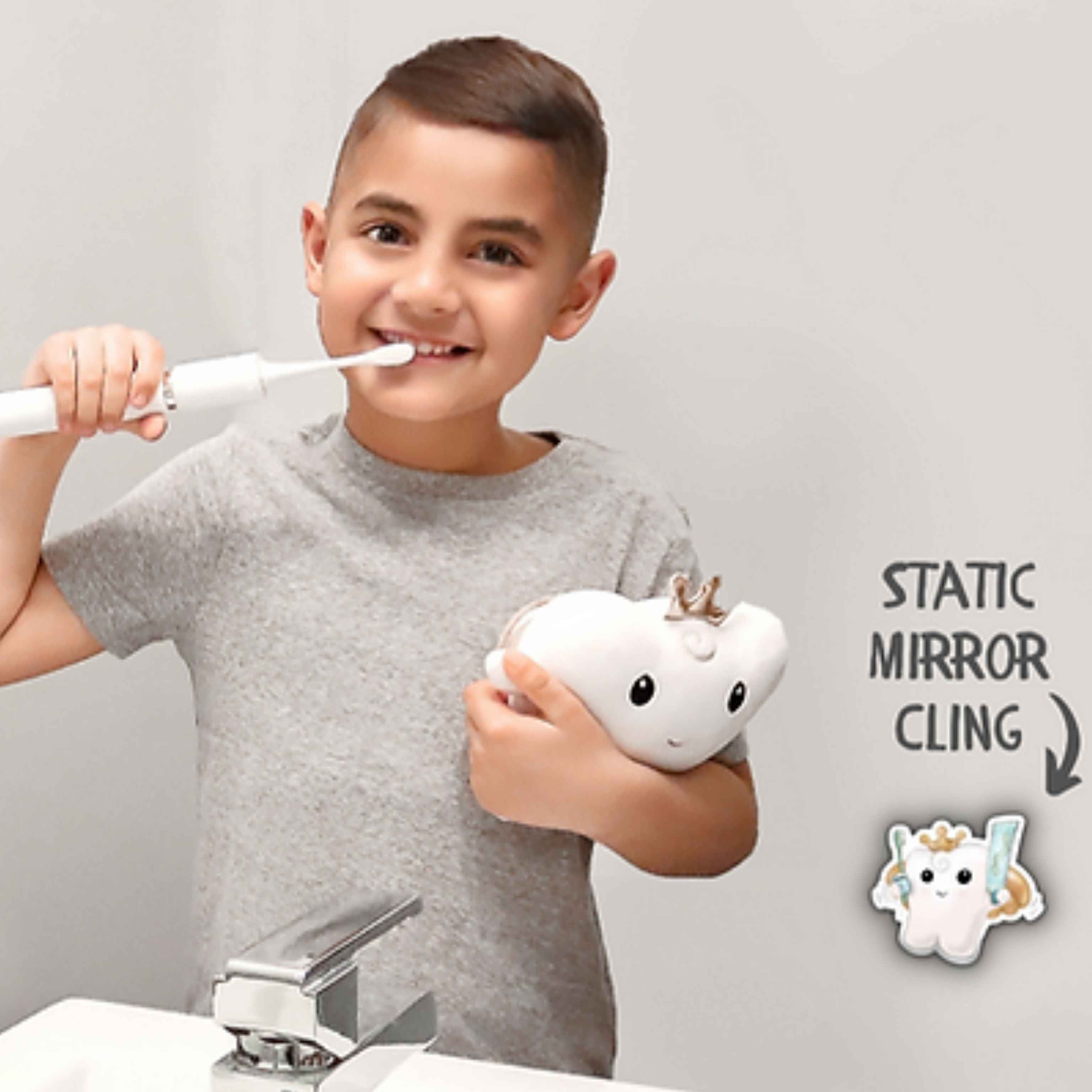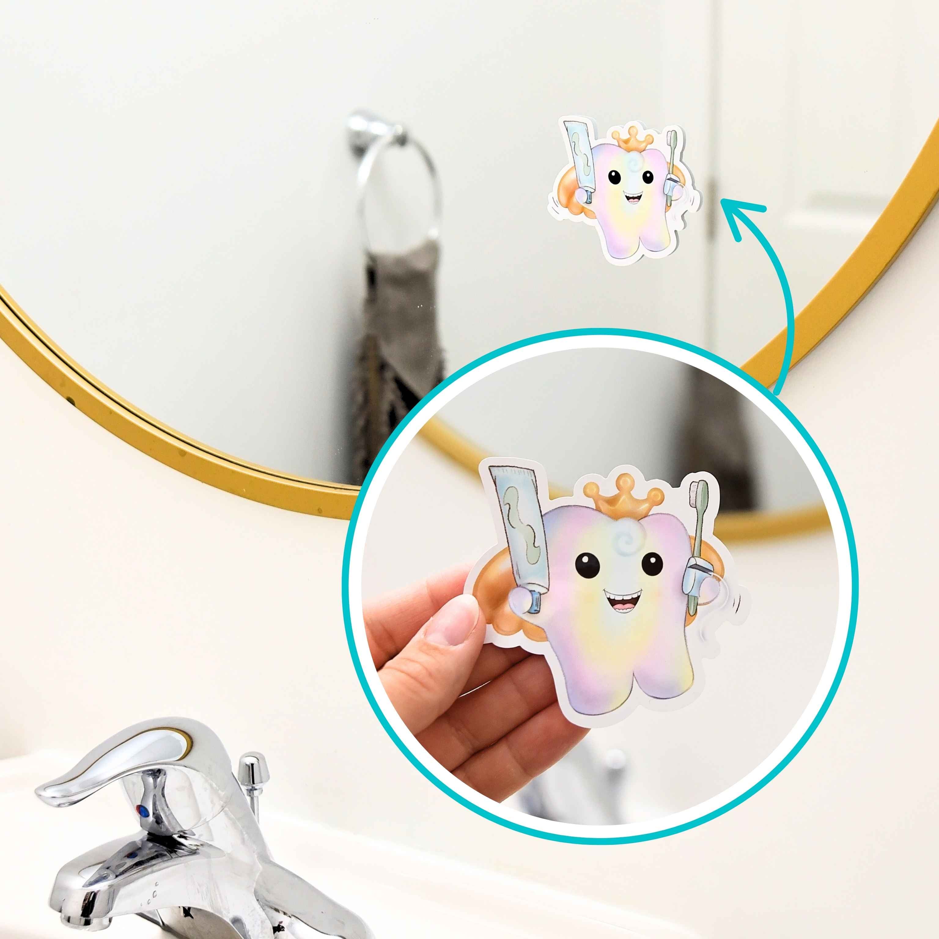 Stick me on the bathroom mirror and I’ll cheer your kiddo on every morning and night.