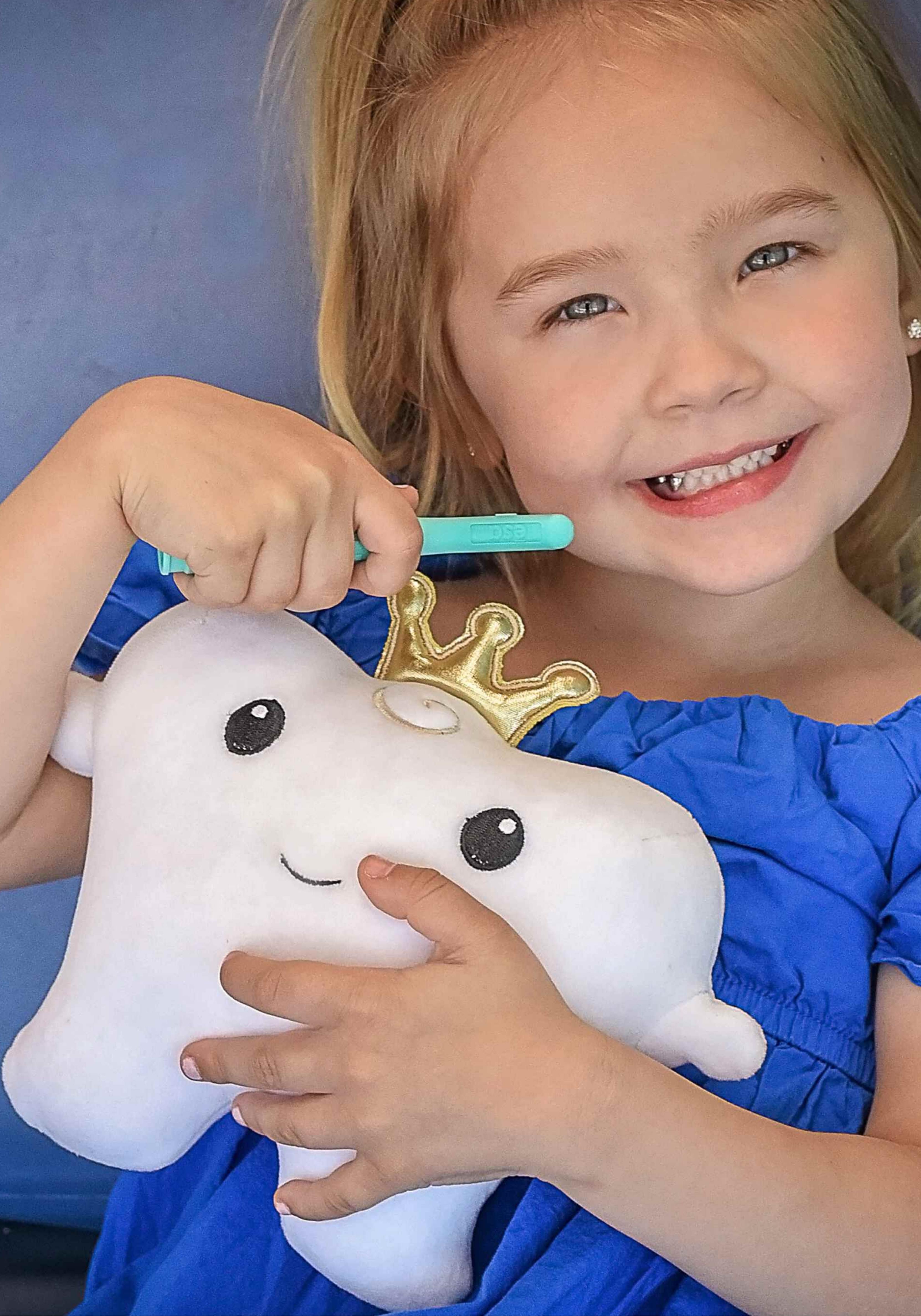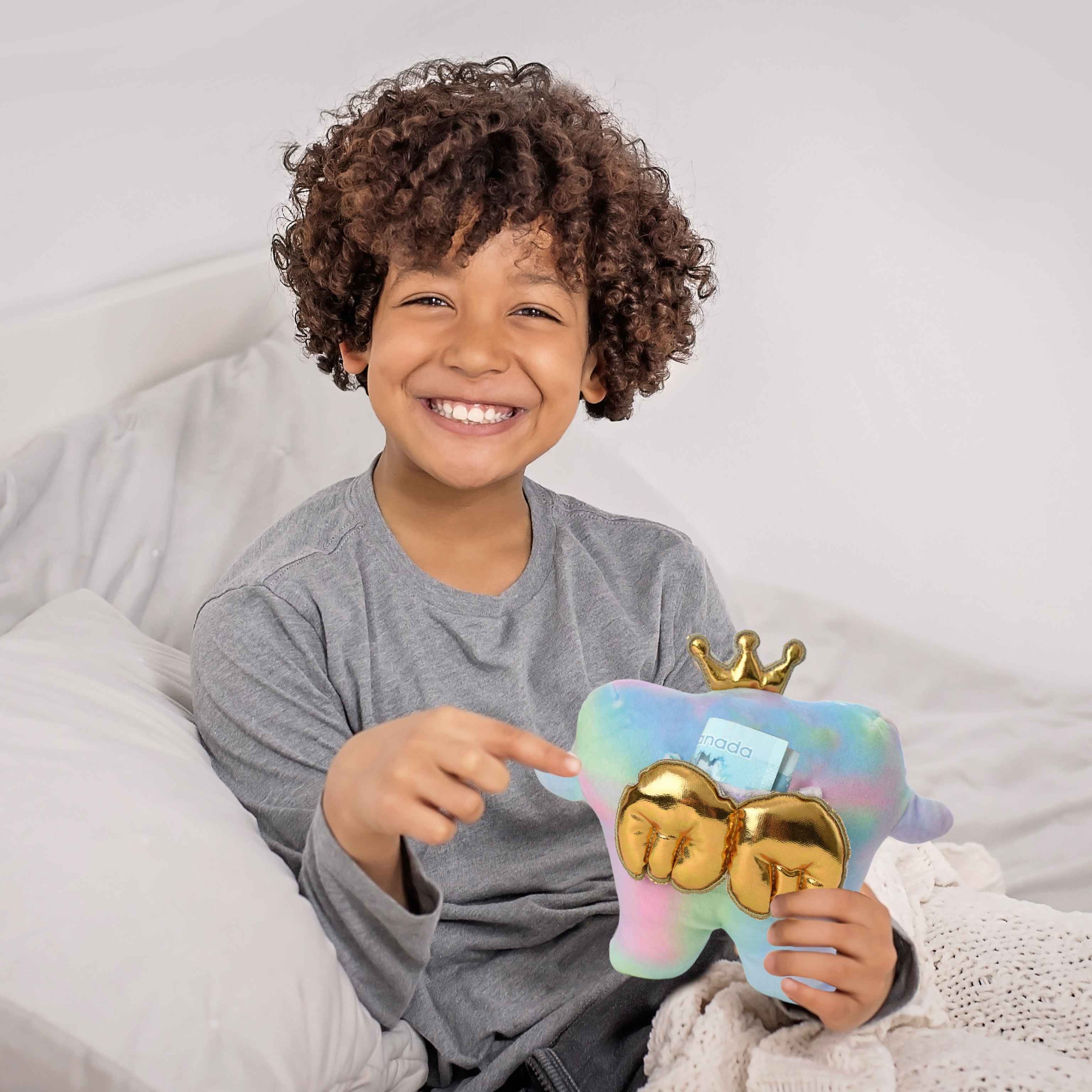 That’s me! I’m super cuddly and always by your side, at home or at the dentist. Plus, I have a Golden Pocket on my back for the Tooth Fairy to use!